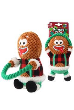 Perníček drží v rukách "vánoční řetěz", který lze použít k uchopení a hračka tak může sloužit i jako přetahovadlo (vhodné spíše pro menší plemena psů).