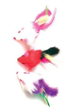 Skákací myš s barevnými peříčky.