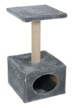 Škrabadlo pro kočky s domečkem, sloupkem a odpočivadlem.