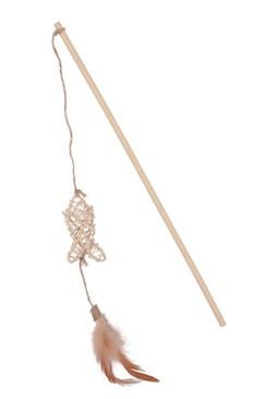 Hračka pro kočky, 100% přírodního původu - bambusová udice, rákos, jutové spoje, peří a švy z bavlny.