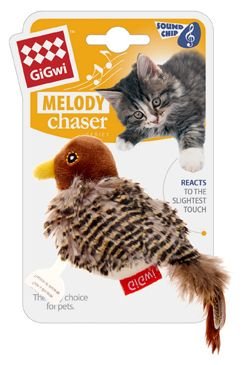 Plyšový ptáček vydávající reálný zvuk, který se aktivuje pohybem.