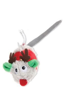 Textilní hračka pro kočky v tématicky laděném designu - vánoční myšky.