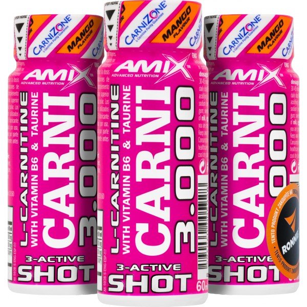 CarniShot 3000 je koncentrovaná tekutá forma L-karnitinu v kombinaci s taurinem a vitamínem B6, v kapesním balení ampulí. Karnitin je oblíbený mezi sportovci v období redukce tuků, pro podporu při zvýšeném fyzickém i psychickém výkonu, zlepšuje využití tuků jako zdroje energie. Díky jednotlivým ampulím si jej můžete snadno vzít kamkoli!