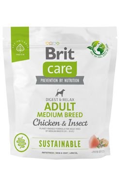 Brit Care Dog Sustainable Adult Medium Breed. Receptura z udržitelných zdrojů surovin Kuře a hmyz pro dospělé psy středních plemen (10 – 25 kg). Kompletní krmivo pro psy.