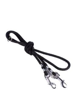 Velice pevné přepínací vodítko v černé barvě zakončené plechovými svorkami a dvěma pevnými karabinami. Délka 2,3 m, průměr 10 mm. Vodítko je vyrobeno z vysoce kvalitního materiálu polypropylenu. Provaz je spleten z 18-ti pramenů, vodítko je tedy velice pevné a odolné. Přitom je velice příjemné do ruky, nezařezává se do dlaní.