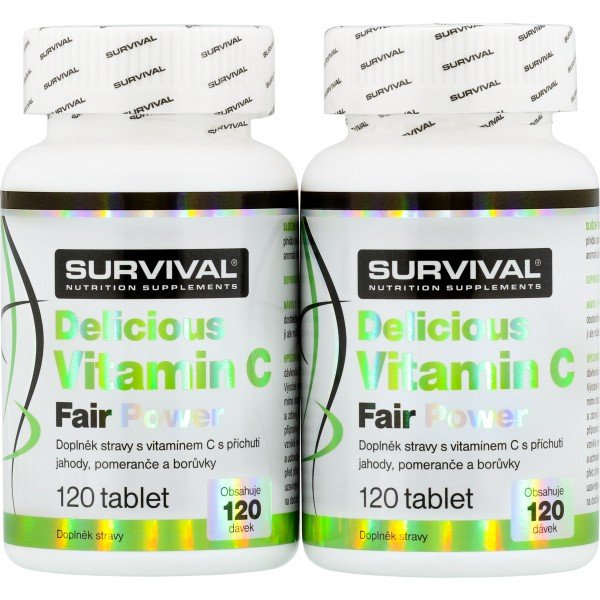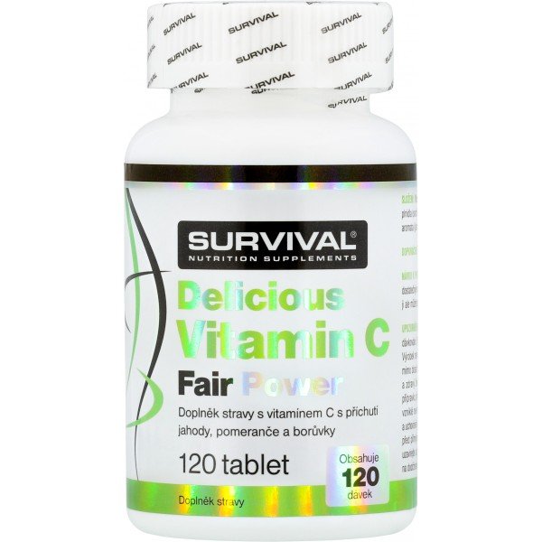 Delicious Vitamin C Fair Power jsou tablety s obsahem 500 mg vitamínu C ve třech skvělých příchutích. Pamatujete, jak chutnalo Lipo? Velmi podobně (a tedy skvěle) chutná i Delicious Vitamin C Fair Power! Každé balení obsahuje 120 tablet v namíchaných příchutích jahody, pomeranče a borůvky. Inovovaná receptura nabízí ještě lepší chuť tablet, které jsou navíc zcela bez barviv! Delicious Vitamin C Fair Power je tak vhodný i pro velmi mladé sportovce snažící se pokrýt denní potřebu antioxidantů zvýšenou vlivem náročné fyzické zátěže. Netrapte se při polykání mnohdy kyselých a chuťově nepříjemných vitamínů, vyzkoušejte Delicious Vitamin C Fair Power a budete příjemně překvapeni, jak skvěle mohou vitamíny chutnat! To vše v tradičně vysoké kvalitě značky Survival, kde maximální jakost použitých surovin garantuje majitel trenérské školy Ronnie.cz a vyhledávaný osobní trenér vrcholových sportovců Pavel Provázek.