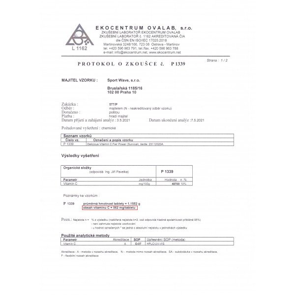 Vitamín C je důležitý antioxidant, který plní v lidském organismu řadu klíčových úloh. Pomáhá k udržení normální funkce imunitního systému během intenzivního fyzického výkonu i po něm, přispívá také k normální tvorbě kolagenu pro normální funkci krevních cév, kostí, chrupavek, dásní, kůže a zubů. Pomáhá též energetickému metabolismu, činnosti nervové soustavy a přispívá k normální psychické činnosti. Přispívá též k ochraně před oxidativním stresem, ke snížení únavy a vyčerpání a podporuje mimo jiné také vstřebávání železa.