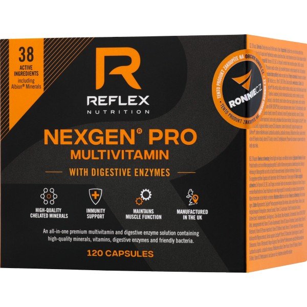 Dělený systém dávkování pro maximální využitelnost a minimální ztráty - denní dávka je na základě nejnovějších vědeckých poznatků rozdělena do 4 průběžných dávek (1 kapsle 4x denně, vždy s jídlem), aby bylo tělo optimálně a rovnoměrně zásobeno v průběhu celého dne = maximální využitelnost + minimální ztráty (naše tělo není uzpůsobeno k tomu přijmout plnou dávku v jedné jednorázové tabletě = ztráty močí). Nexgen Pro Multivitamin + Digestive Enzymes tak nabízí sofistikované řešení „děleného“ multivitamínu ve formě kapslí, který byl sestaven pro průběžné dávkování během dne. I když je celý výrobní proces nákladnější, tedy pokud srovnáte například masovou výrobu jedné tablety (nejnižší náklady) versus dělená denní dávka ve 4 kapslích, je pro společnost Reflex Nutrition vždy na prvním místě využitelnost, kvalita a zdraví.