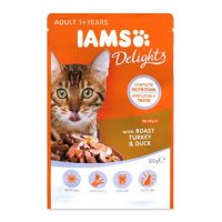Kapsička pro kočky s pečeným masem z krocana a kachny v želé. Kompletní krmivo pro dospělé kočky.