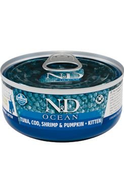 Chutná masová konzerva s treskou, krevetami a dýní. Kompletní vlhké krmivo pro dospělé kočky.