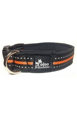 Reflexní obojek Dinofashion v oranžovo-černé barvě pro lepší viditelnost v případě nepříznivého počasí, v šeru a v noci. Podšito černým softshellem pro větší pohodlí Vašeho pejska. Šířka 3 cm.