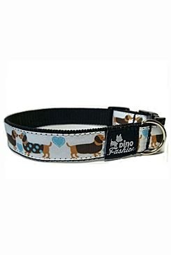 Popruhový obojek se s motivem jezevčíci vyrobený v České republice. Kvalitní zpracování a veselý originální vzor obojku pro Vašeho mazlíčka.