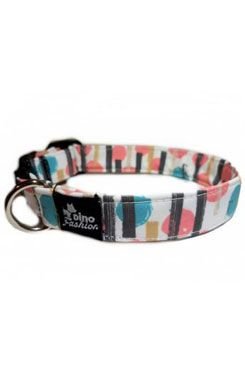 Stylový obojek Dinofashion. Základ tvoří pevný popruh pošitý designovým softshellem. Velikost obojku je nastavitelná se zapínáním na plastový trojzubec. Obojek je široký 3cm.