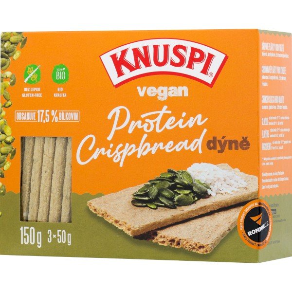 Co je zdravé, není chutné, a co je chutné, není zdravé - tradiční „moudrost“, která je v lidech zakořeněná více než většina jiných mýtů a omylů ohledně zdravé výživy. Tak to pro Knuspi Vegan Protein Crispbread rozhodně neplatí! Plátky Knuspi Crispbread se jistě stanou pevnou součástí Vašeho jídelníčku a budou Vás provázet v průběhu celého dne, ať již se bude jednat o zdravou snídani, svačinu nebo poslední pochoutku před usnutím. Vhodné pro vegany. Příchuť natural a dýně neobsahuje lepek.