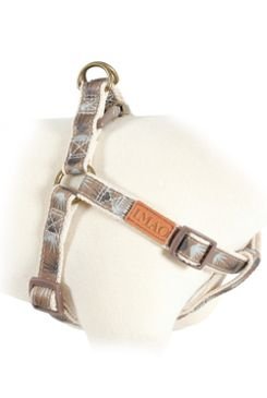 Nastavitelný postroj s přírodním vzorem opatřený kovovými kroužky a plastovou sponou s měděnou úpravou a logem "Zolux".