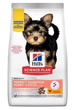 vaším veterinárním lékařem. Ve věku 12 měsíců přejděte na Hill's Science Plan PERFECT DIGESTION KRMIVO pro DOSPĚLÉ 1+ PSY MALÝCH A TRPASLIČÍCH PLEMEN. ODSTAV