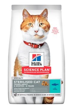 HILL'S SCIENCE PLAN Sterilized Cat granule pro mladé dospělé kočky mají unikátní složení pro kontrolu hmotnosti, které udržuje kastrované kočky štíhlé. Obsahuje vysoce kvalitní, snadno stravitelné ingredience.