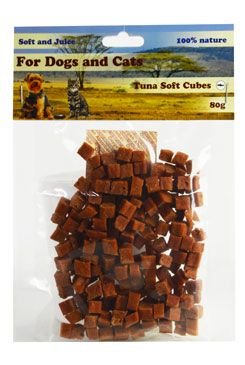Měkké kostky z tuňákového masa. Pro psy a kočky.
