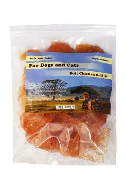Měkké proužky z kuřecího masa pro psy a kočky. Složení: kuřecí maso 100%