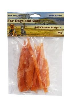 Měkké proužky z kuřecího masa pro psy a kočky. Vynikajíci pochoutka pro psy.