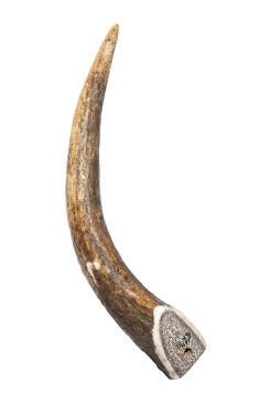 Záruka kvalitního parohu: Volně žijící jelen otírá paroží o stromy a keře a paroží se nasákne přírodními minerály, které mu dodají rozpoznatelnou hnědou barvu.