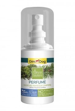 Gimdog parfém pro psy vanilka 50 ml. Gimdog parfém s sladkou a jemnou vůní bílého pižma a jehličnanů. Vyvinut speciálně z čistě přírodních látek tak, aby dokázal absorbovat zápachy bez toho aby byl nepříjemný pro citlivý nos psa.. Voda, Triethyl Citrate, Parfem.