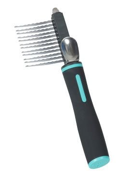 Prořezávací hřeben s 12 bezpečnými čepelemi pro psy na dlouhou srst. Rozplétá a zastřihuje zacuchané chlupy.
