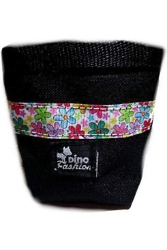 Pamlskovník Dinofashion je praktická taštička na pamlsky vyrobená z pevné voděodolné látky s motivem Happy Flowers. Zapíná se na suchý zip. Vnitřek pamlskovníku obsahuje podšívku, ze které snadno vyklepete zbytky pamlsků. Na zadní straně je našitá karabina, která se připevní na poutko kalhot nebo opasek. Vyrobeno v České republice.