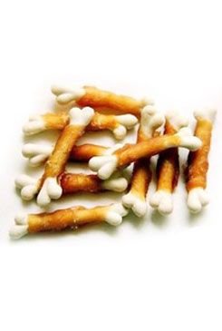Proužek kuřecí svaloviny namotaný na křupavé kalciové kosti. Slouží jako odměna při hře, výcviku nebo jako doplněk stravy při cestách.