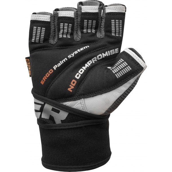 No Compromise jsou vysoce kvalitní rukavice spojené s výztuží zápěstí, která Vám dodá jistotu u všech silových cviků, kde je pevný úchop základem pro dokonalou sérii. Určené k intenzivnímu cvičení. Vrchní část rukavice je vyrobena z prvotřídní, trvanlivé kůže, prsty rukavice mají malé otvory a ohebnou vložku pro optimální regulaci vzduchu. Anatomicky střižená, dvouvrstvá kožená dlaň s tvarováním Ergo Palm System. Silná, lemovaná bavlněná omotávka zpevňující oblast zápěstí a zajišťující perfektní stabilitu ruky - na konci suchý zip.