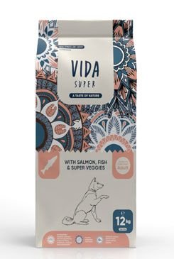 Losos, ryba, směs zeleniny a ovoce. Kompletní krmivo pro dospělé psy středních a velkých plemen.