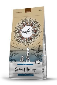 Losos a sleď. Kompletní krmivo pro dospělé psy středních a velkých plemen.