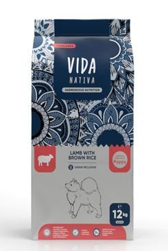 Jehněčí s hnědou rýží. Kompletní krmivo pro štěňata středních a velkých plemen a pro březí nebo kojící feny.