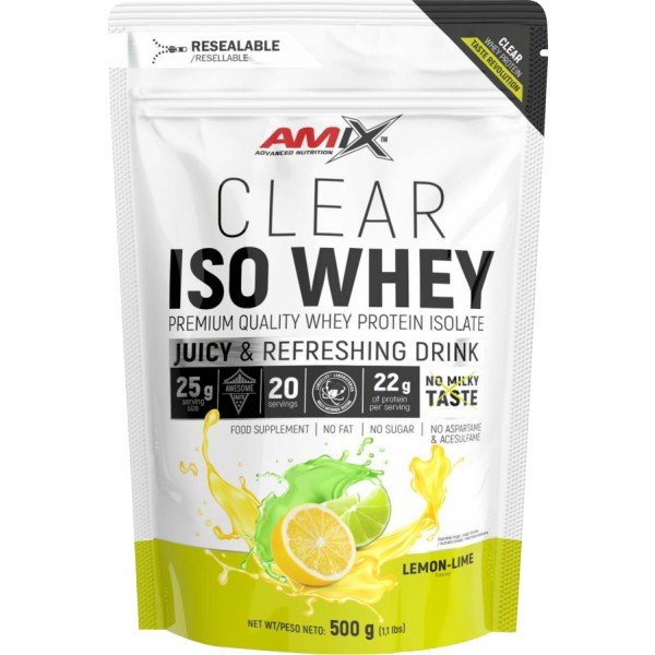 Clear Iso Whey je krystalicky čistý syrovátkový proteinový izolát prémiové kvality ve vysoce koncentrované formě se skvělým aminokyselinovým spektrem. Tento vysoce kvalitní produkt je typický svou čirostí, snadnou rozpustností, čistou, osvěžující a nemléčnou chutí. Bílkoviny přispívají k růstu a udržení svalové hmoty. Bez tuku, bez cukru.