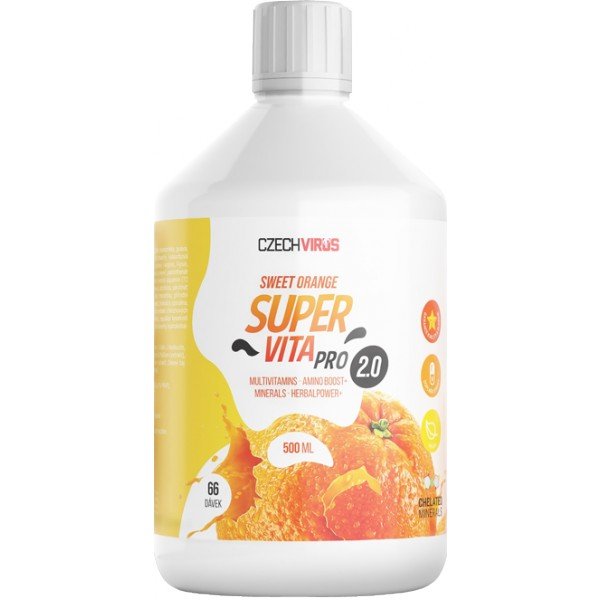 SuperVita Pro 2.0 je vysoce kvalitní tekutý multivitamín s minerály v chelátových vazbách, aminokyselinami a extrakty z ovoce a zeleniny. Extrémní nálož B-komplexu pro sportovce, přírodní vitamín A (beta karoten), vitamín E i vitamín D3 (z lišejníku). Obsahuje všechny důležité vitamíny ve vysoké dávce, minerály v chelátových vazbách a pestré množství dalších látek pro podporu zdraví (koenzym Q10, lutein, zeaxanthin, cholin, ženšen, zázvor (jen v příchuti pikantní zázvor), ashwaganda...). Složení je navíc kompletně vegan-friendly, ochuceno směsí ovocných šťáv z koncentrátu a slazeno steviol-glykosidy. All-in-one multivitamínová formule, naprostý základ suplementační pyramidy.