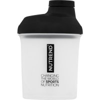 Šejkr Nutrend má transparentní barvu nádoby, černý uzávěr i malé šroubovací víčko. Nádoba je matná, transparentní se dvěma hladkými průhledy pro kontrolu náplně, jeden má rysky v ml. Uzávěr je hladký s matným malým víčkem s potiskem N. Na šejkru je po obou stranách logo Nutrend a nápis Changing the world of sports nutrition v černém provedení. Objem šejkru je 300 ml. Šejkr obsahuje mřížku pro lepší rozmíchání nápoje. Šejkr, který pro jeho design ocení opravdu kdokoli! [zbozi:7795,7793]