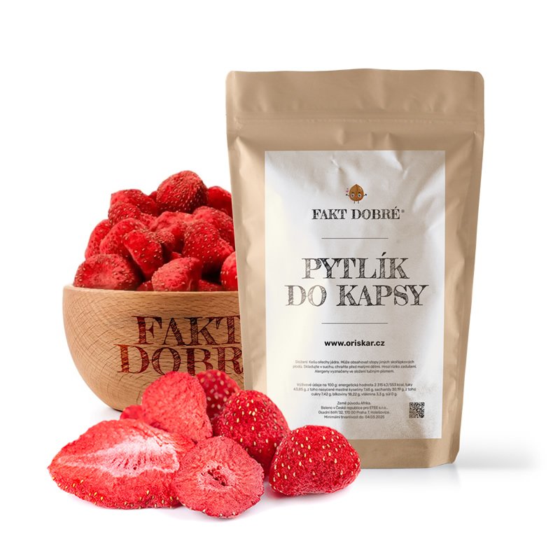 Lyofilizované jahody jsou plné přírodních cukrů a vlákniny, což je ideální pro rychlé doplnění energie.