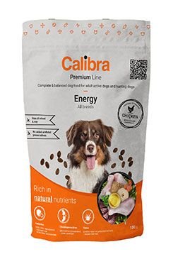 Calibra Dog Premium Energy je kuřecí receptura pro aktivní dospělé psy a pro psy lovecké. Jedná se o vysoce kvalitní kompletní suché krmivo pro všechny psí mazlíčky. Nabízí vyvážený poměr všech potřebných živin, vitamínů, minerálů či stopových prvků tak, aby plně zabezpečily všechny výživové nároky zdravého aktivního psa.