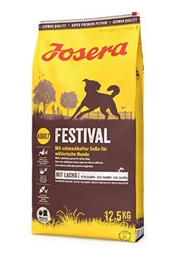 Obzvlášť aromatické a chutné: křupavé granule pro psy od Josera Festival s práškovou omáčkou nabízejí Vašemu náročnému pejskovi jedinečný chuťový zážitek jak v suché, tak i mokré formě. Vyvážená receptura s lososem je bohatá na energii pro aktivní a sportovně založené psy. Různé a snadno absorbovatelné výživové látky se postarají o pohodu a aktivitu. Josera Festival se vyznačuje vyváženým obsahem vápníku, fosforu, vitamínu C, manganu a mědi. Tento komplex vitálních látek se postará o silnou stavbu kostí a zdravé klouby. Cenné mastné kyseliny, zinek a měď se zlepšují zdraví kůže a lesklost srsti. Neobsahuje žádná umělá barviva, aromata, konzervační látky, ani geneticky upravované suroviny.
