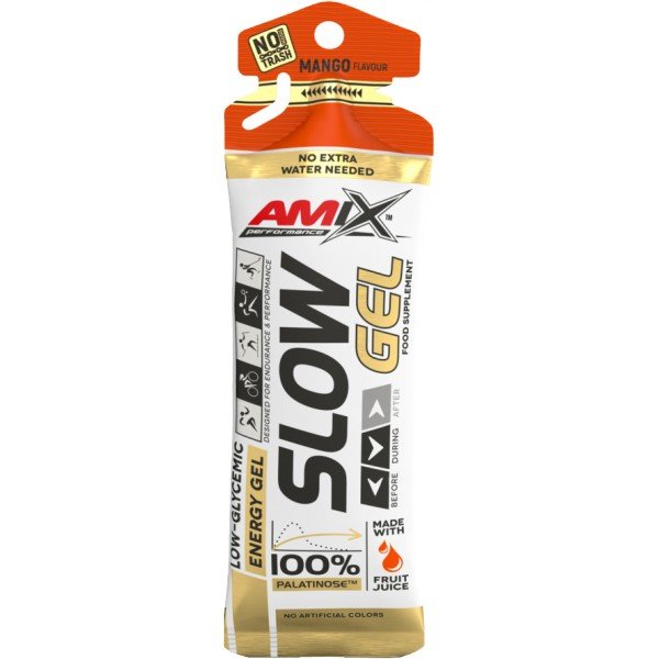 Slow Gel je super koncentrovaný energetický gel s pomalejším uvolňováním s obsahem palatinózy obohacený o vitamín C a B6. Tento doplněk stravy postupně dodává Vašemu tělu energii díky pomalému uvolnování glukózy do krve. Vytvořen pro vytrvalost a maximální výkon. S ovocnou šťávou. Bez umělých barviv.