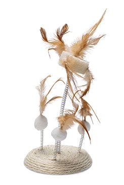 Spodní deska je vyrobena ze sisalu, proto ideální na škrábání. Plyšové hrací míčky a sušená lufa jsou opatřeny peřím. Hračky jsou připevněny k základní desce pomocí kovových spirálek a kývají se do všech stran, jakmile do nich vaše kočka poklepe tlapkami.