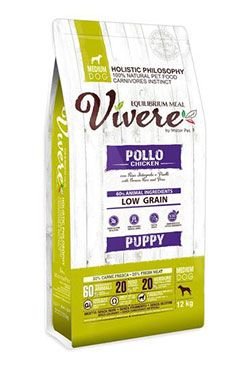 kuřecí moučka (23 %), čerstvé kuřecí maso (20 %), celozrnná hnědá rýže (20 %), hrách, krůtí a kuřecí tuk (9 %), hrachový škrob, dehydrovaná moučka ze sledě (6 %), fazole, lněné semeno (3 %), hydrolyzované proteiny z jater (2,5 %), vláknina z červené řepy, kvasnice, moučka z mořských řas (0,3 %), manna – oligo- sacharidy (MOS 0,2 %), extrakt (0,03 %), dehydrovaná kůra z granátového jablka (0,02 %), semena ostropestřce mariánského (0,02 %), sušené jablko (0,02 %), sušené květy ibišku (0,016 %), sušené plody psí růže (0,002 %).