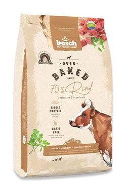 Toto krmivo pro psy je vyrobeno bez obilnin. Dobře stravitelným zdrojem sacharidů jsou zde kvalitní brambory. Lahodnou chuť masa dodává krmivu jediný živočišný zdroj bílkovin - hovězí. Podíl čerstvého hovězího dosahuje 62%. Jemná receptura je doplněna vybranými domácími "superpotravinami", například petrželí a červenou řepou. Ty dodávají Vašemu miláčkovi důležité vitamíny, minerální látky a stopové prvky. Bosch HPC Oven Baked hovězí je krmivo vyrobené speciálním způsobem, jak již napovídá název. Krokety jsou šetrným způsobem pečeny v troubě, díky čemuž si zachovávají neodolatelně křupavou konzistenci. Zároveň zůstávají zachovány živiny a chuť v nejvyšší možné míře.