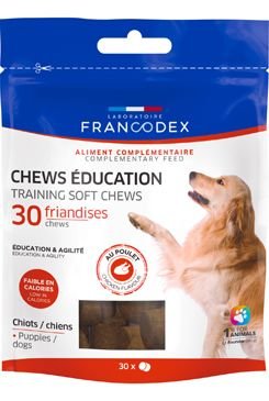 Psi jsou při učení citliví na odměny a známky náklonnosti. Bez umělých barviv nebo dochucovadel a bez přidaného cukru doprovází FRANCODEX edukační pochoutka všechna období učení vašeho psa. Pamlsky jsou nízkokalorické a lze je používat při procházkách i při výcviku nebo kurzech agility. V praktickém formátu v podobě malých válečků jsou vhodné pro všechna plemena a velikosti psů.