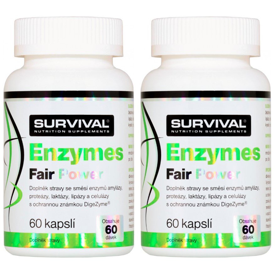 Výhodou některých (proteinových či sacharidových) suplementů v posledních letech je, že do nich výrobci přidávají trávicí enzymy. Nevýhodou pak, že těchto enzymů je většinou omezené množství a nezaměřují se na pomoc při trávení přijaté stravy komplexně. Proto jsme se rozhodli vytvořit suplement, který pomůže při trávení všech tří základních složek potravy – bílkovin, sacharidů i tuků – a navíc i dalších dvou složek, které bývají mnohdy pro řadu lidí problematické – laktózy a celulózy. Všichni sportovci, kteří nám při testování Survival Enzymes Fair Power pomáhali, byli s účinky spokojeni. Navíc, utratí-li lidé mnohdy za svoji stravu tisíce korun a další tisíce za proteinové či sacharidové suplementy, je investice „dvou stovek“ do enzymů naprosto zanedbatelná. Přesto je co do výsledného účinku a tréninkových pokroků velmi významná, troufám si říci, že pro některé jedince i klíčová.