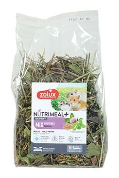 Složení: sušený jetel 14%, vojtěška, stonek máty 14%, rostlina kopřivy, jitrocel, vrbová kůra, heřmánek, květ ibišku, sušený hmyz 5% (sušený moučný červ, larvy bource morušového)