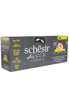 Kočky mají dlouhou historii jako noční predátoři, kteří se v noci vydávají hledat malou kořist. Dokonce i nyní, když žijí v domácím prostředí, stále mají instinkt a nutriční potřeby skutečného masožravce. Proto je Schesir After Dark založen na mase se skutečnými kusy orgánů plných živin, což jsou ingredience, které kočky v přírodě hledají. Je také plný bílkovin a neobsahuje žádné obiloviny.