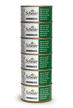 Konzervu pro kočky Schesir Cat Adult in Jelly s obsahem kvalitních kousků masa v chutném želé si vaše kočka zamiluje. Kousky masa jsou rozdrobeny pro snadný příjem, stále jde ale o opravdové kousíčky masa, nikoliv mletého. Konzistence je díky hustému želé měkká a chuť je naprosto výborná. Pochoutka je také pečlivě sestavena tak, aby uspokojila i starší kočky, které mají problémy s polykáním.