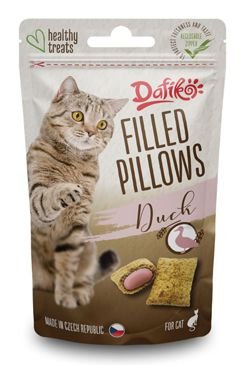 Pamlsek pro kočky ve formě plněných kachních polštářků.