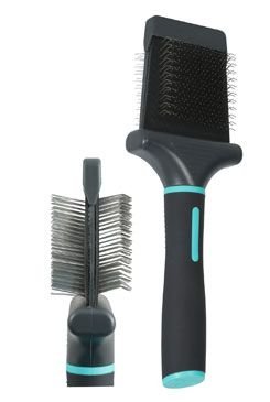 Pružný oboustranný rozčesávací kartáč pro psy na všechny typy srsti. Rozčesává, odstraňuje uvolněné chlupy a vyhlazuje srst.